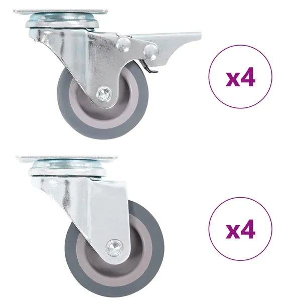 Ten zestaw 8 skrętnych kółek będzie idealnym dodatkiem do niewielkich sprzętów i mebli, takich jak stół warsztatowy, wózek, stolik kawowy, stojak na rośliny, regał, koszyk itp.