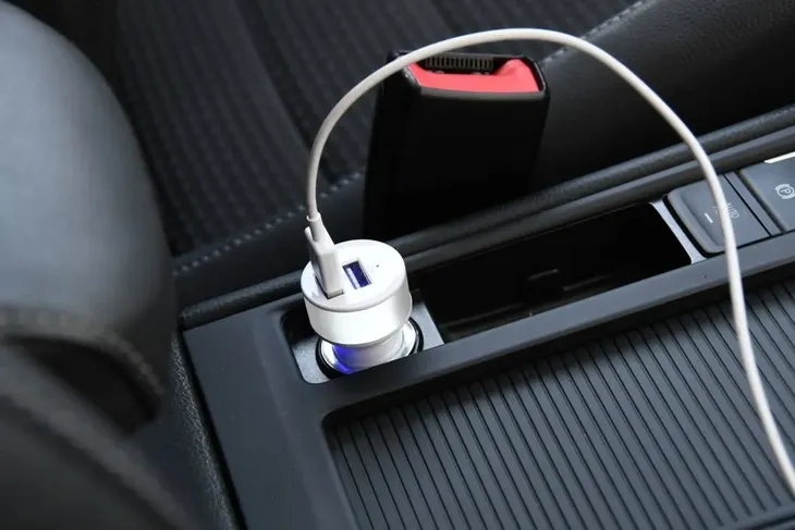 Adapter do ładowania urządzeń USB z gniazda zapalniczki samochodowej. Odpowiedni dla odtwarzaczy MP3, telefonów komórkowych i innych urządzeń, które są ładowane przez wspólne źródło USB. Zawsze używaj kabla ładującego, w przypadku użycia kabla do danych ładowanie może nie działać poprawnie.
