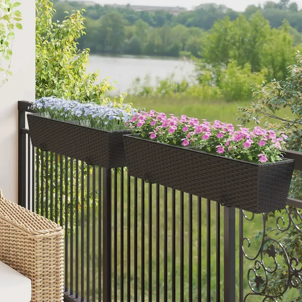 Ten nowoczesny kwietnik balkonowy, stworzony do użytku na zewnątrz, łączy w sobie minimalistyczny design z funkcjonalnością przypominającą rattan. Trapezoidalny kształt i naturalny wzór rattanu sprawiają, że jest idealny do upiększenia balkonu czy tarasu.