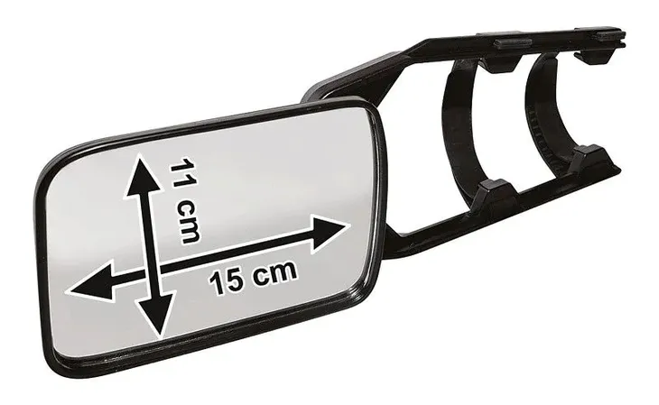 Dodatkowe lusterko boczne z regulowanym kątem do wszystkich stron. Odpowiedni do prawie wszystkich typów pojazdów, zamontowany na istniejącym lusterku bocznym. Dzięki gumowym zaciskom lustro nie wibruje. Może być stosowany zarówno po lewej, jak i po prawej stronie. Idealny do jazdy z przyczepą lub przyczepą kempingową. Nie ogranicza funkcji istniejącego lustra.