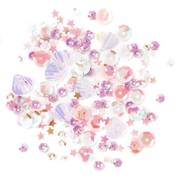 Mix cekinów opalizujących Unicorn to niesamowita kompozycja składająca się z wyjątkowych kształtów i kolorów. Zestaw ten zawiera aż sześć rodzajów cekinów. Znajdziesz w nim klasyczne, okrągłe (w dwóch rozmiarach i aż trzech wariantach kolorystycznych), muszelki oraz drobne kwiatki i gwiazdeczki. Cekiny z kompozycji Unicorn urzekają swoimi opalizującymi odcieniami w kilku różnych kolorach różu.