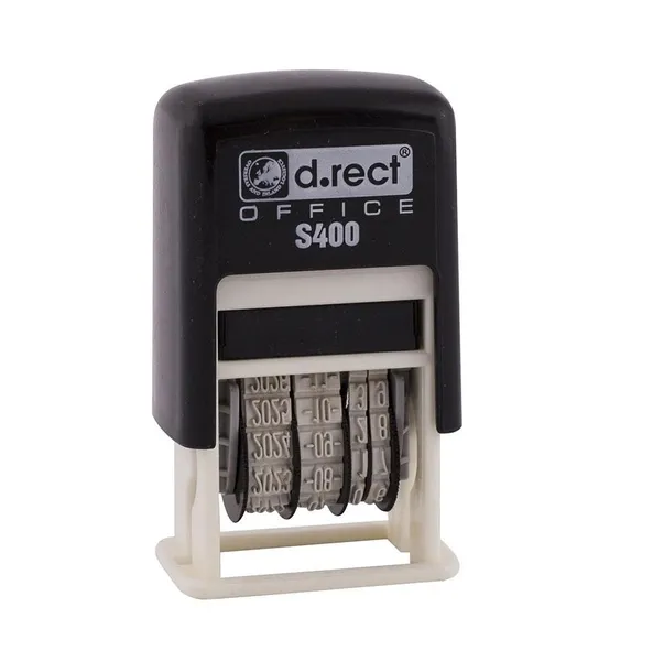 Datownik d.rect ISO S400 charakteryzuje się mocną, trwałą, a jednocześnie lekką obudową, wykonaną z tworzywa ABS w kolorze czarnym. Znakomicie sprawdzi się w codziennej pracy biurowej. Nienasączona poduszka, umożliwia własny wybór koloru tuszu. Wysokość czcionki 4 mm. Data w formacie rrrr.mm.dd. Miesiąc pisany cyframi, np. 01,02 itd.