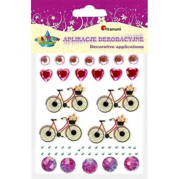 Aplikacje samoprzylepne kryształki i drewno kryształki: okrągłe, serca, drewniane naklejki: rower mix