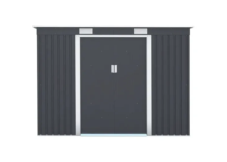 Z domku ogrodowego wykonasz np. narzędzia ogrodnicze, rowery, kosiarki, akcesoria basenowe itp. Dzięki podwójnym drzwiom przesuwnym będziesz miał wygodny dostęp.