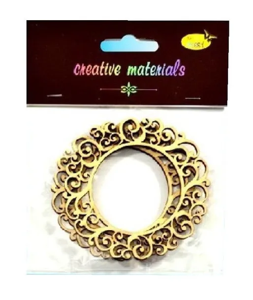 Wykonane ze sklejki, cięte i grawerowane laserowo elementy do naklejania i dodatkowego zdobienia, pakowane w opakowanie z eurozawieszką. Elementy w kształcie : ramek. Wielkość ca. 8,5 cm