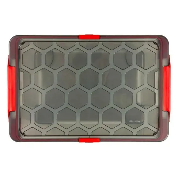 Plastikowe pudełko z pokrywką. Pojemność 44 L. Praktyczne klipsy i plomby chronią zawartość przed wilgocią, szkodnikami i kurzem. Wysokiej jakości design szwajcarskiej marki Rotho.