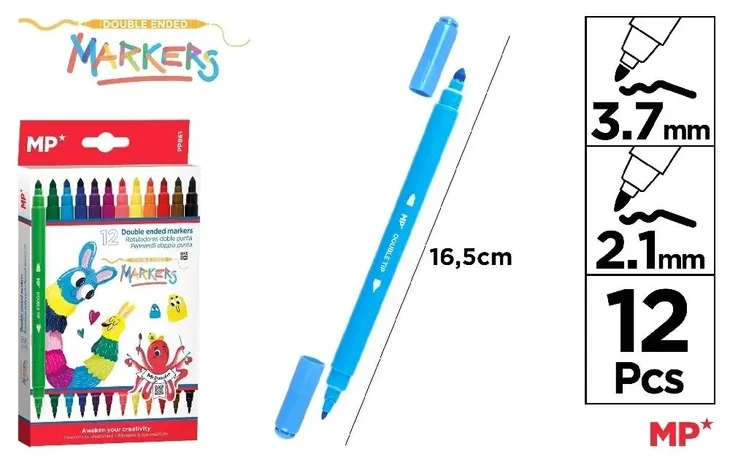 Flamastry dwustronne 12 kol. 2.1-3.7mm 12szt./opakowanie MP