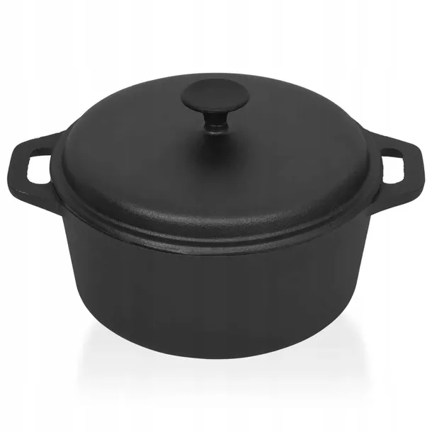Ten kociołek wykonany jest z żeliwa i równomiernie rozprowadza ciepło. Pasuje do prawie wszystkich kuchenek gazowych i elektrycznych oraz innych przestrzeni do gotowania lub do bezpośredniego użycia na ogniu lub na grillu. W tym garnku możesz piec i zapiekać. Dodatkowo uchwyt chroni dłonie przed dotknięciem gorącej powierzchni.
