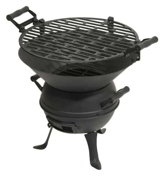 Konstrukcja wykonana jest z żeliwa o czernionej powierzchni. Drewniane rączki zapewniają wygodny uchwyt do regulacji rusztu lub przenoszenia całego urządzenia. Stabilność zapewniają trzy metalowe nóżki przymocowane do grilla w dolnej części. Grill jest również wyposażony w regulowaną wentylację w dolnej części. Grill jest wyposażony w żeliwny ruszt o regulowanej wysokości, na którym można przyrządzać smakołyki.