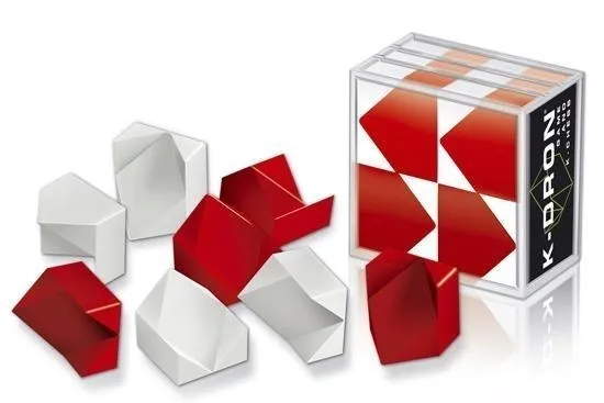 Jeśli lubisz łamigłówki logiczne, a żeby dać upust frustracji obgryzasz paznokcie z przemyślenia i uderzasz się w czoło z bojowym okrzykiem Eureka, to przyda Ci się K-Dron. Dlaczego? Ponieważ jest to jedna z najbardziej irytujących i zarazem uzależniających łamigłówek, które wprowadziliśmy do sprzedaży. Zapomnisz o reszcie świata w ciągu kilku sekund. K-Dron to skomplikowana figura geometryczna odkryta przez polskiego wizjonera Janusza Kapustę, która stała podstawą tych przenośnych puzzli - łamigłówki. Przed Tobą 38 416 schematów do ułożenia! Celem zabawy jest takie złożenie elementów K-Dron (czterech czarnych i czterech białych), aby zbudować kształty pokazane w książeczce załączonej do łamigłówki.