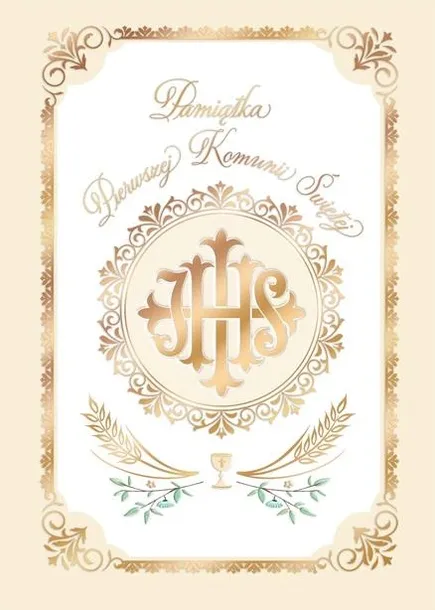 Karnet w formacie B6, złocony i tłoczony, teksy życzeń w środku. Wydrukowany na wysokiej jakości papierze. Koperta w zestawie.