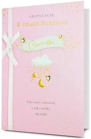 Kartka jest bogato i różnorodnie zdobiona (zależnie od wzoru: metaliczna folia, lakier perłowy,