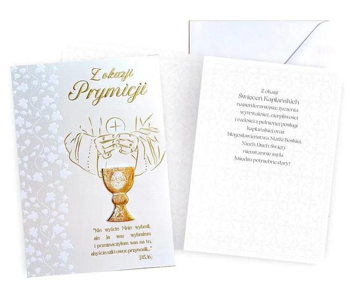 Kartka B6 z ozdobnej serii Dream Cards na prymicję - nieduża, ale robi wrażenie dzięki atrakcyjnej kolorystyce i ciekawym zdobieniom. To idealny wybór łączący przyjazną cenę z jakością. Cechy szczególne: wielkość: B6, 16.6 x 11.7 cm po złożeniu, koperta: w zestawie, zdobienia: kolorowe, różnorodne, bogate (w zależności od wzoru: przyklejane dekoracje, elementy biżuteryjne, odstawniki, brokat metaliczne folie, tłoczenia itp.), okazja: prymicja