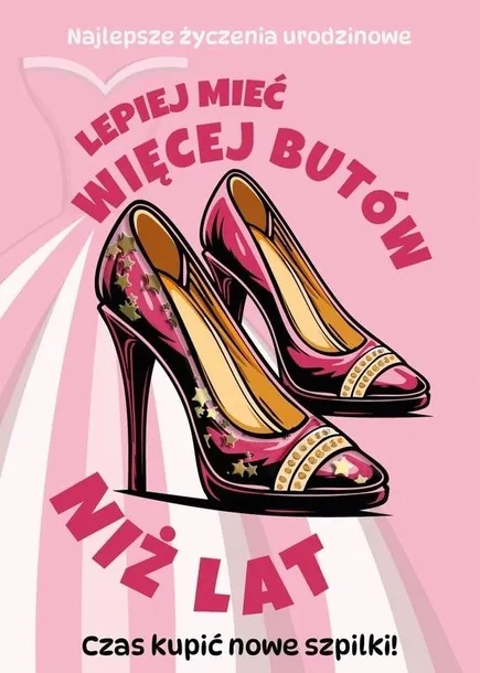 Karnet Konfetti formatu B6, z elementami złocenia lub srebrzenia. Front ozdobione w złote gwiazdki konfetti, które urozmaicają kartkę. Idealny wybór na wyjątkowe urodziny.
