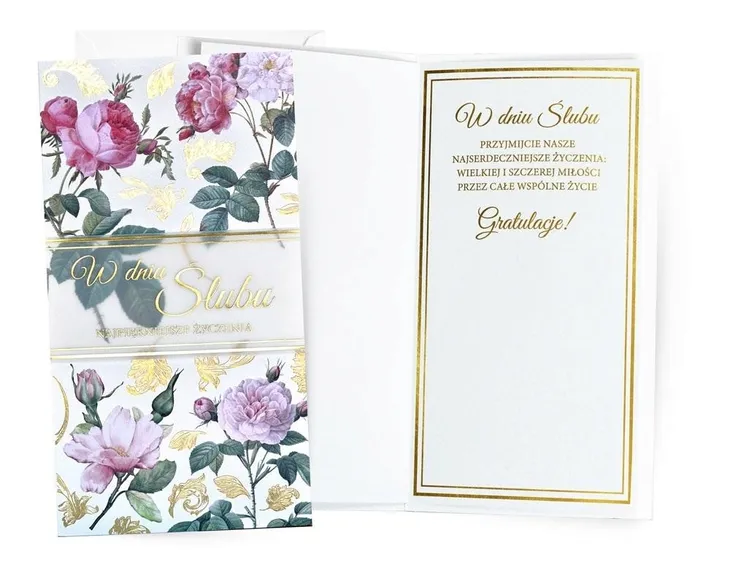 wnętrze: z delikatną grafiką, wyjątkowe życzenia w środku,