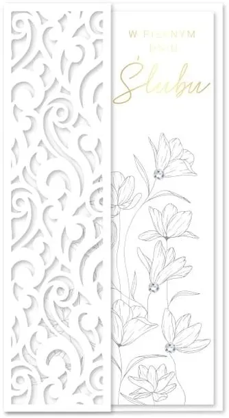 Każda kartka w kolekcji Passion Moments to małe arcydzieło - wyjątkowe i niepowtarzalne, piękne wizualnie. Kartki PM są bardzo bogato zdobione, a jednocześnie skromne i stylowe, cały efekt tkwi w detalach i doskonałym wykonaniu. W zależności od wzoru, na kartkach znajdują się dekoracje ze złotej, srebrnej, perłowej lub holograficznej folii, a także doklejki biżuteryjne, kokardki, brokat, laserowe wycięcia, wstążeczki i inne dodatki. Wnętrze karnetu to zawsze atrakcyjna grafika i tekst życzeń. Kartki mają w komplecie dopasowaną kopertę. Cechy szczególne: zdobienie: przynajmniej dwie folie (metaliczne/perłowe/holograficzne), brokat, elementy doklejane, wycięcia laserowe, wstążeczki - w zależności od wzoru, wnętrze: z delikatną grafiką, wyjątkowe życzenia w środku, w komplecie: dopasowana kolorystycznie koperta, okazja: Ślub Wymiary karnetu po złożeniu: 11,4 x 21,5 cm.