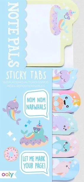 Te samoprzylepne zakładki Note Pals przedstawiają jednorożca morza narwala! Kto by pomyślał, że karteczki samoprzylepne mogą być najsłodszą rzeczą w twoim domu? Razem z nimi organizacja pracy i nauki od razu będzie przyjemniejsza! Dodaj odrobiny słodyczy swoim notatkom i pozaznaczaj je zabawnymi karteczkami indeksującymi z tymi fantastycznymi, morskimi narwalami!