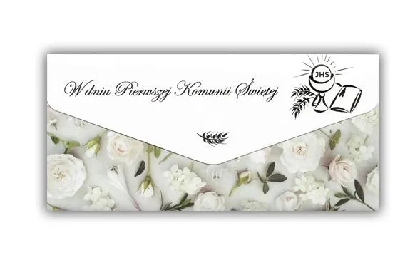 Po złożeniu format kartki DL, wyjątkowe złocenia, w środku życzenia i kieszonka na pieniądze. Dodatkowa koperta