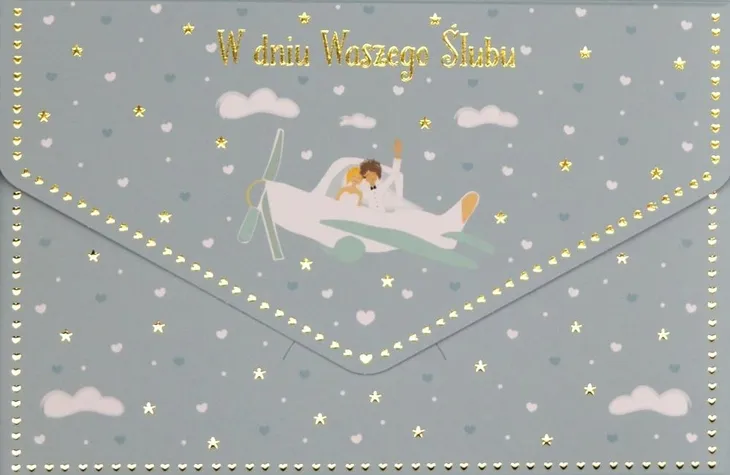 Kartka-koperta z życzeniami i kieszonką na pieniądze w środku.