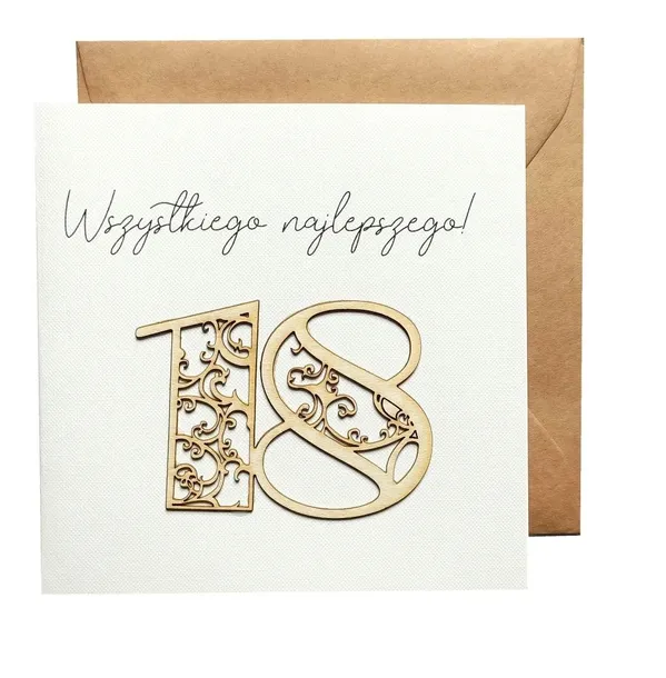 Kartka okolicznościowa z okazji urodzin o treści: Rozpostrzeć skrzydła to twe pragnienie, zapomnieć o strachu to twe marzenie, chcesz polecieć samotnie w daleki świat, możesz to osiągnąć, bo przecież dziś kończysz 18 lat