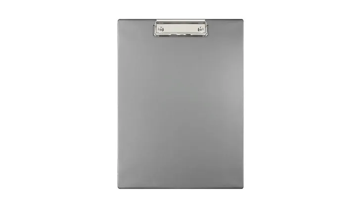 Wykonany z kolorowej folii PVC. Środek usztywniony tekturą. Wyposażony w sprężysty mechanizm zaciskowy służący do przytrzymywania kartek. Podkładka pojedyncza. Format A4.
