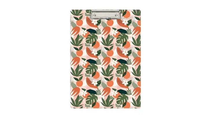 Wykonana z folii PVC z pełnym, ozdobnym nadrukiem, wewnątrz usztywniona tekturą. Wyposażona w sprężysty mechanizm zaciskowy służący do przytrzymywania kartek papieru. Służy jako sztywna podkładka do pisania podczas konferencji, spotkań, jak i codziennej pracy. Format A4.