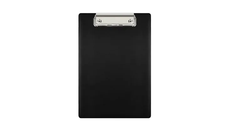 Wykonany z kolorowej folii PVC. Środek usztywniony tekturą. Wyposażony w sprężysty mechanizm zaciskowy służący do przytrzymywania kartek. Podkładka pojedyncza. Format A5.