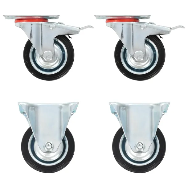- Przesyłka obejmuje 2 kółka nieskrętne i 2 kółka skrętne z podwójnym hamulcem
