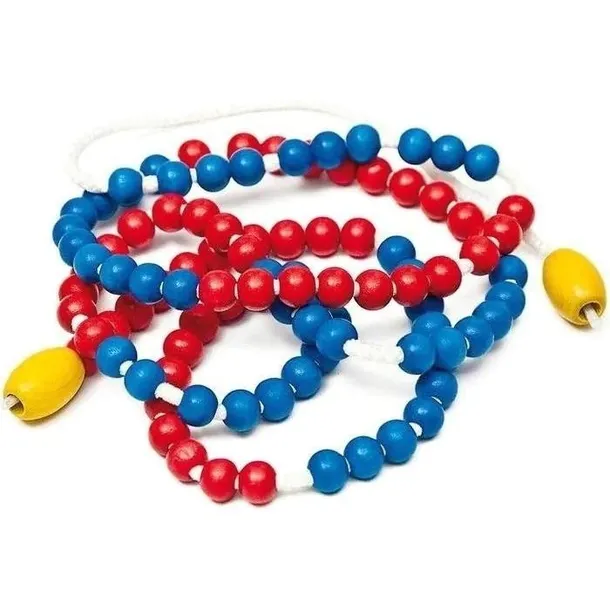Drewniane korale w kolorze czerwonym i niebieskim, stanowią sprawdzony i praktyczny system nauki liczenia. Można ustawiać je na sznurku w dowolnej pozycji tak, by nie przesuwały się po nim samoistnie, ponieważ nawleczone są na grubym, porowatym sznurku.Dla dzieci powyżej 3 lat