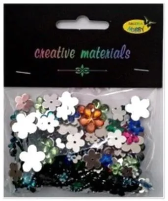 Kwiatki akrylowe 6-16 mm w miksie kolorów . Pakowane w opakowania z eurozawieszką zawierające 20 gram elementów. Kod towaru :GK1299
