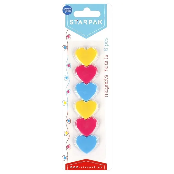 Zestaw mocnych kolorowych magnesów w plastikowej obudowie w kształcie serca od STRAPAKA. Przydatne w biurze, domu oraz pracy. Zapoznaj się również z innymi produktami Starpak dla biura, domu. Magnesy pakowane na blistrze po 6 szt. Wykonane z plastiku.Występują w trzech kolorach: niebieskim, żółtym, różowym.