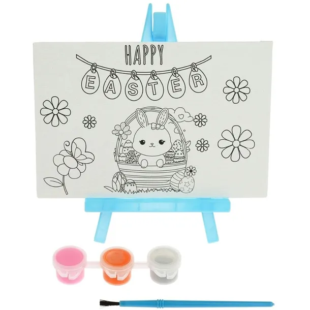 Mini obraz na płótnie to wyjątkowy zestaw z rysunkiem z motywem wielkanocnym do malowania. W komplecie znajdują się farbki i pędzelek, co umożliwia samodzielne stworzenie pięknej dekoracji. Rozmiar płótna sprawia, że jest ono idealne zarówno dla dzieci, jak i dorosłych. Zestaw jest kompaktowy i łatwy do przechowywania.