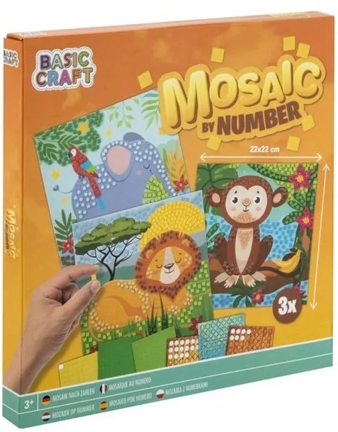 Mozaika według numeru. Komplet kart o wymiarach 22 x 22 cm.