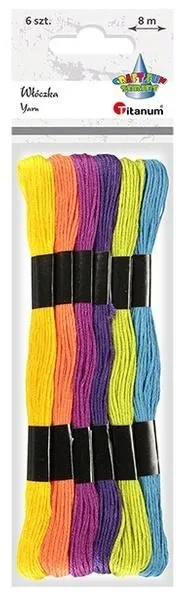 Mulina w zestawie 6 kolorów jaskrawych. Każdy motek o długości 8 m. Wykorzystywana przede wszystkim do haftowania, ale także do innych robótek ręcznych, m.in. wykańczania zakładek do książek, albumów, kartek okolicznościowych oraz ręcznie wykonywanej biżuterii, np. wyplatania bransoletek.
