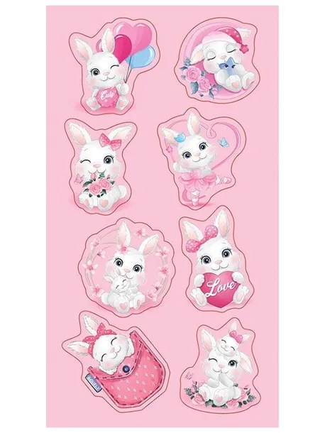 Zestaw naklejek do ozdoby zeszytów, albumów, listów, pocztówek - 8 słitaśnych zajączków.