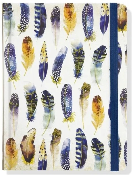 Notatnik w sztywnej, wytłaczanej okładce, zamykany na gumkę, z tyłu koperta. 160 stron . Produkt w linię.