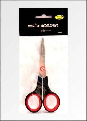 Nożyczki z ostrzem tnącym długości 13.5cm i szpiczastą końcówką. Dobrze trzymają się w dłoni. Pakowane pojedynczo w opakowaniu z eurozawieszką