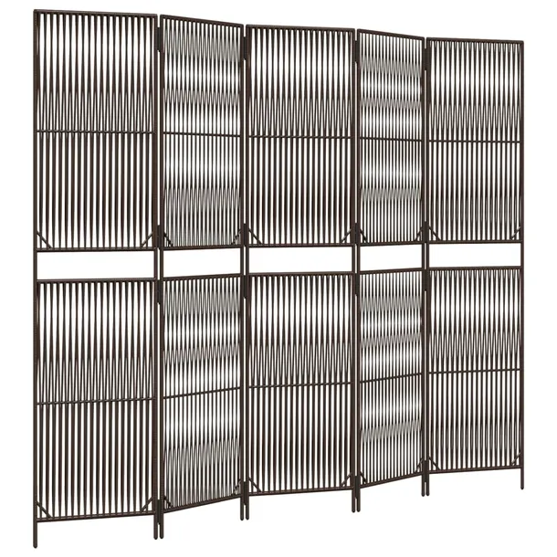 Parawan 5-panelowy, brązowy, polirattan