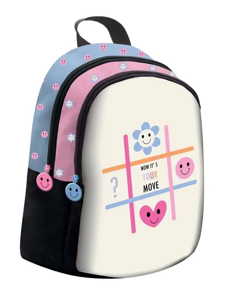 Różowo - błekitny plecaczek z motywem gry Kółko i krzyżyk, to prawdziwy strzał w dziesiątkę dla dziewczynek. Jest to model wykonany z trwałych i odpornych na uszkodzenia materiałów. Zastosowane do produkcji tworzywa nie stanowią żadnego zagrożenia dla malucha. Trzeba dodać, że opisywany plecak zapewnia najwyższą wygodę użytkowania. Tylna komora elastycznie dopasowuje się do kręgosłupa.Opis plecaczka przedszkolnego