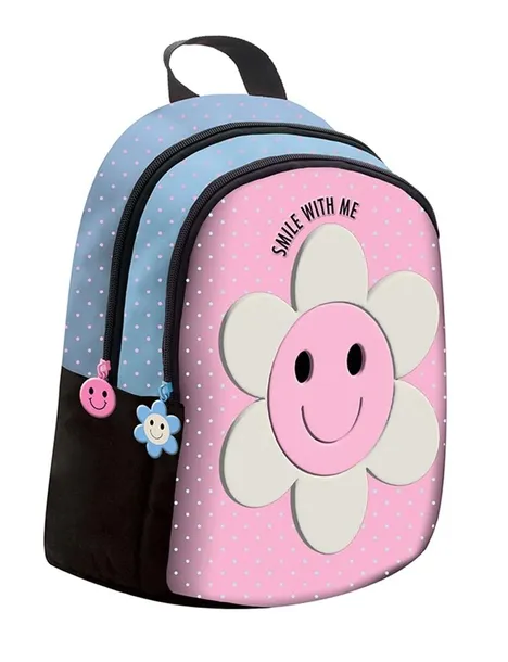 Różowo - błekitny plecaczek z kwiatkiem to prawdziwy strzał w dziesiątkę dla dziewczynek. Jest to model wykonany z trwałych i odpornych na uszkodzenia materiałów. Zastosowane do produkcji tworzywa nie stanowią żadnego zagrożenia dla malucha. Trzeba dodać, że opisywany plecak zapewnia najwyższą wygodę użytkowania. Tylna komora elastycznie dopasowuje się do kręgosłupa. Opis plecaczka przedszkolnego