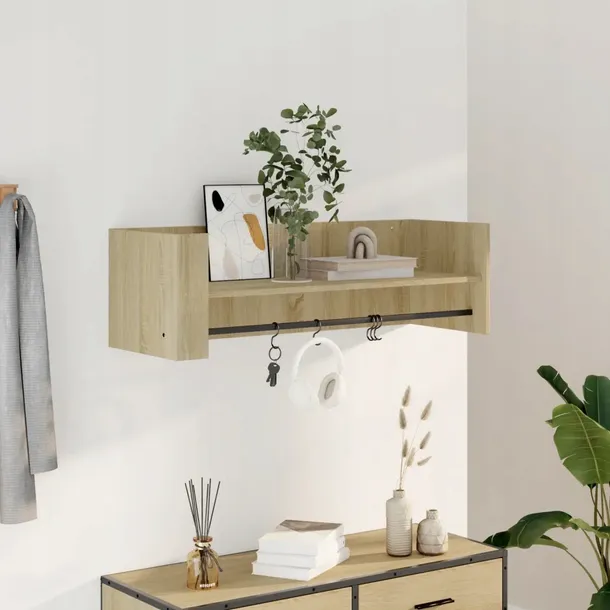 - Dużo miejsca do przechowywania: półka ścienna oferuje poręczną przestrzeń do przechowywania różnych rzeczy codziennego użytku w sposób uporządkowany i w zasięgu ręki. Dodatkowo półka jest wyposażona w drążek na wieszaki, dzięki czemu można na niej powiesić klucze, torby, czapki i tak dalej.