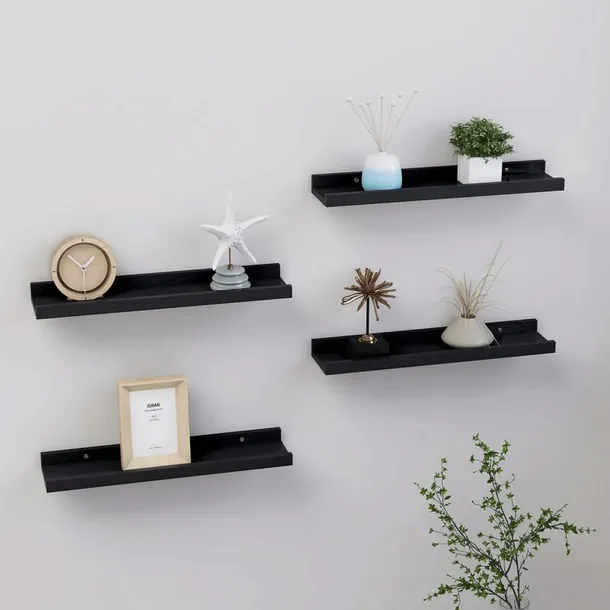 Półki ścienne, 4 szt., czarne, 40x9x3 cm