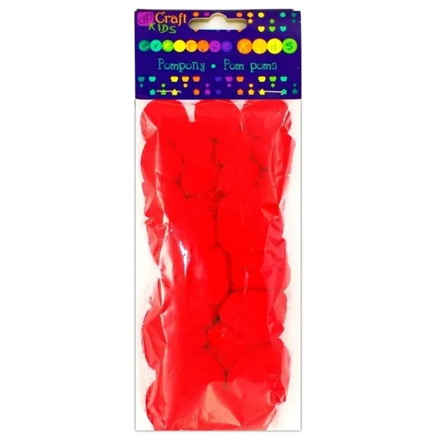 Pompony akrylowe czerwone 24szt mix