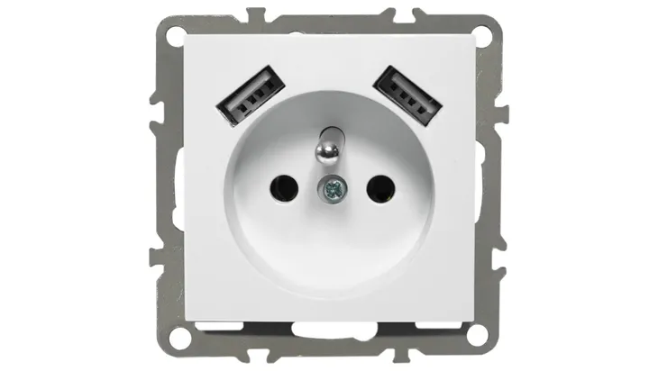 QUADRA Gniazdo z/u +2x USB 2.1A białe