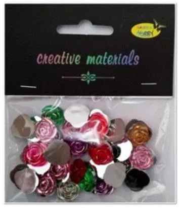 Różyczki akrylowe 15 mm w miksie kolorów . Pakowane w opakowania z eurozawieszką zawierające 16 gram elementów. Kod towaru :GH-R099