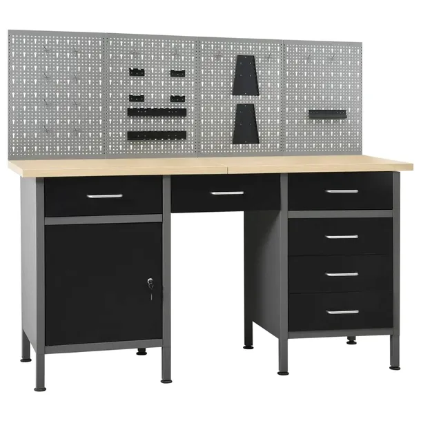 Zestaw ten łączy 1 stół roboczy i 4 panele ścienne, stanowiąc praktyczne rozwiązanie kwestii przechowywania w warsztacie lub garażu.