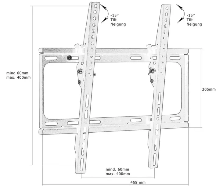- uchwyt ścienny do mocowania telewizorów plazmowych, LCD, LED o przekątnej ekranu do 65 cali.