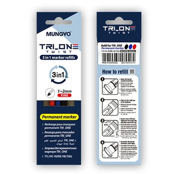 Opakowanie zawiera trzy wkłady do markera w piórze 3 kolory w jednym.