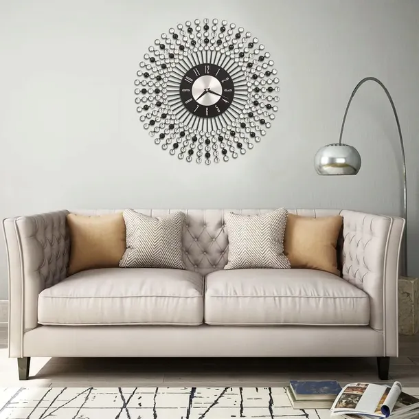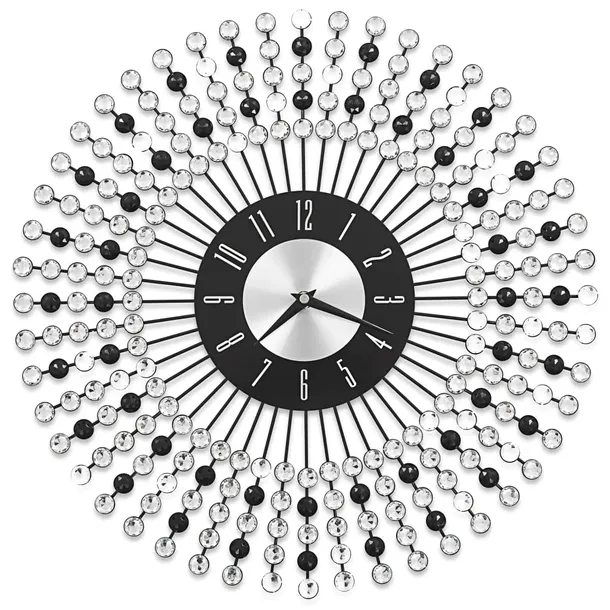 Wprowadź główny element do swojej przestrzeni dzięki naszemu fantastycznemu, metalowemu zegarowi ściennemu! Wyróżniający się błyszczącymi kryształowymi detalami, ten zegar ścienny jest naprawdę wspaniałym elementem i będzie doskonałym dodatkiem do Twojego wnętrza.