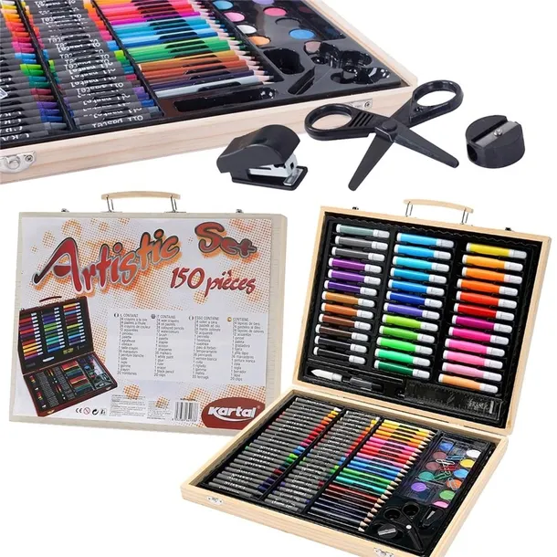 Zestaw artystyczny w walizce zawiera aż 150 różnorodnych przyborów, które pozwolą rozwijać umiejętności artystyczne i tworzyć niesamowite dzieła.